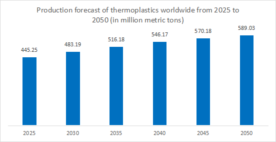 图3:2025-2050全球塑料产量预测